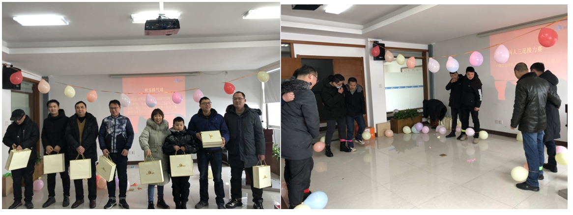 隨后,兩人三足、默契你演我猜、光盤拔河、摸黑抓娃娃、歡樂踩氣球各個游戲接踵而來,在各個游戲活動間隙,綜管部代表公司還為協(xié)普家人們準備了豐富的獎品。在大朋友小朋友的共同參與和你爭我趕的勁頭之下,如虎躍龍騰般地熱鬧了整個北京廳和協(xié)普廠區(qū)。